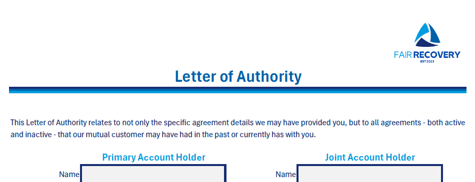 By signing our Letter of Authority (LoA), you empower Fair Recovery to act on your behalf, ensuring we can engage directly with banks and lenders to advocate for your rights. This step marks a significant move towards reclaiming what is rightfully yours. Your trust in us to represent your interests is something we value deeply.